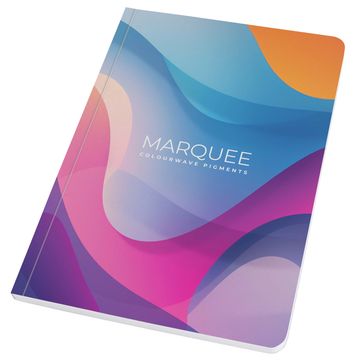 We can offer a fully bespoke full colour print to front, back and spine of book using vegetable based inks to a white cover.